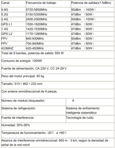 Es la solución definitiva para exteriores contra drones. Es seguro, fácil de usar y se puede instalar fácilmente en casas, oficinas, aeropuertos o lugares militares importantes. El dispositivo utiliza contramedidas electrónicas (Jamming) específicas para bloquear las señales de control, GPS y video del dron, minimizando el impacto en otros dispositivos locales. Incorpora antenas omnidireccionales que interrumpen frecuencias utilizadas por la mayoría de los drones comerciales. Tiene un alcance de hasta 3 km. Gracias a sus múltiples salidas de potencia, el operador puede elegir si desea que el dron regrese a casa o aterrice. El dispositivo no daña al dron ni a su operador.